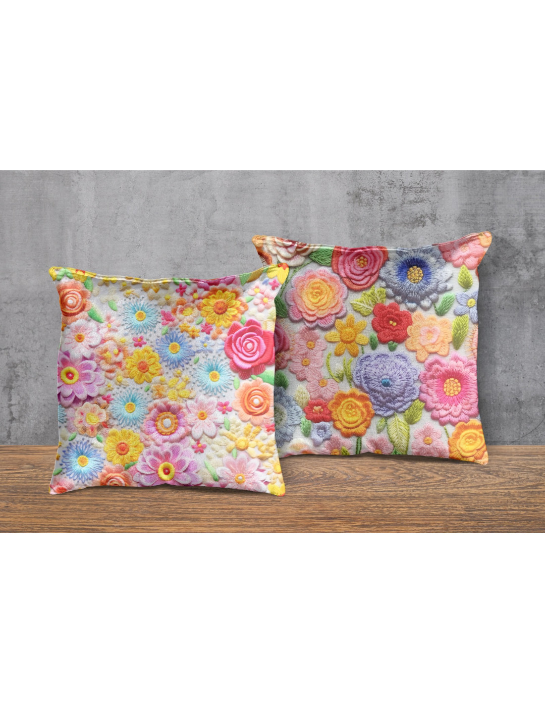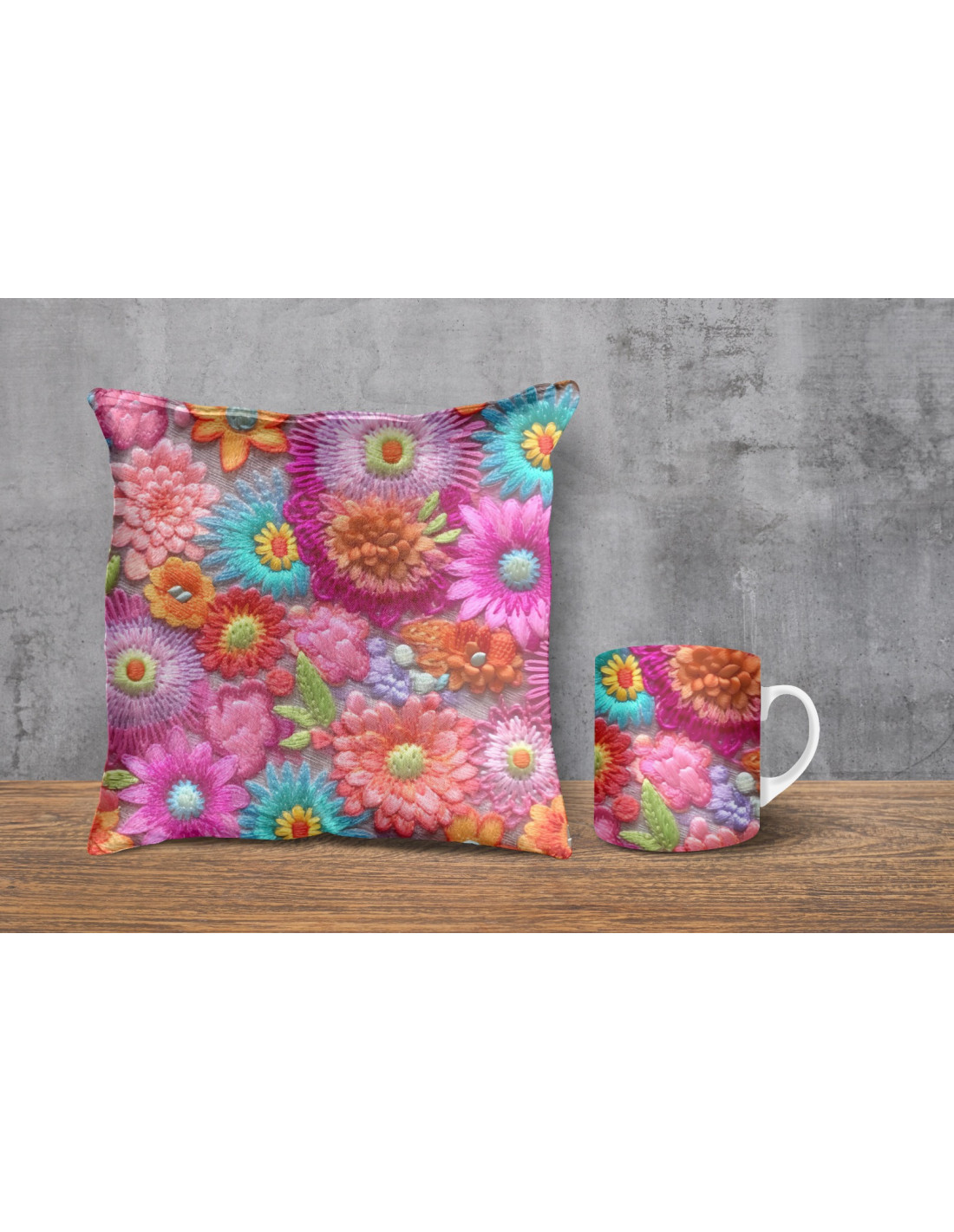 Almohadones + taza fondos floreados tejido