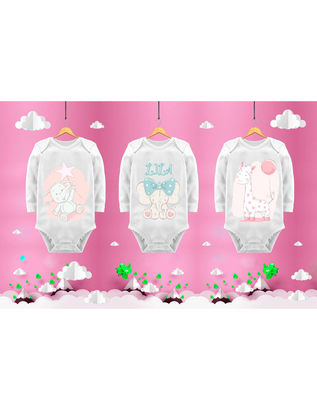 DIBUJOS PNG PARA SUBLIMAR EN BODYS. EL PACK CONTIENE 70 DIBUJOS PNG DE DISTINTOS ANIMALITOS, LETRAS PARA ESCRIBIR, Y DIBUJOS DE MANCHAS PARA CREAR LOS DISEÑOS. ADEMAS INCLUYE LOS MOCKUP.