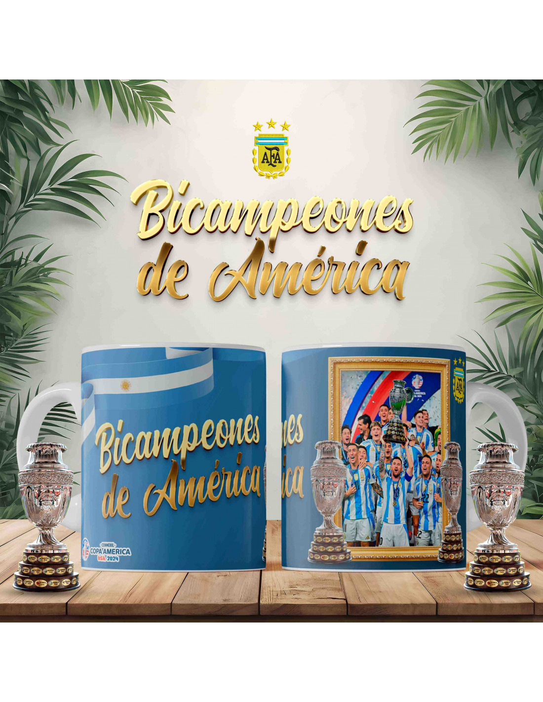 PLANTILLAS PARA TAZAS ARGENTINA BICAMPEÓN COPA AMERICA 2024