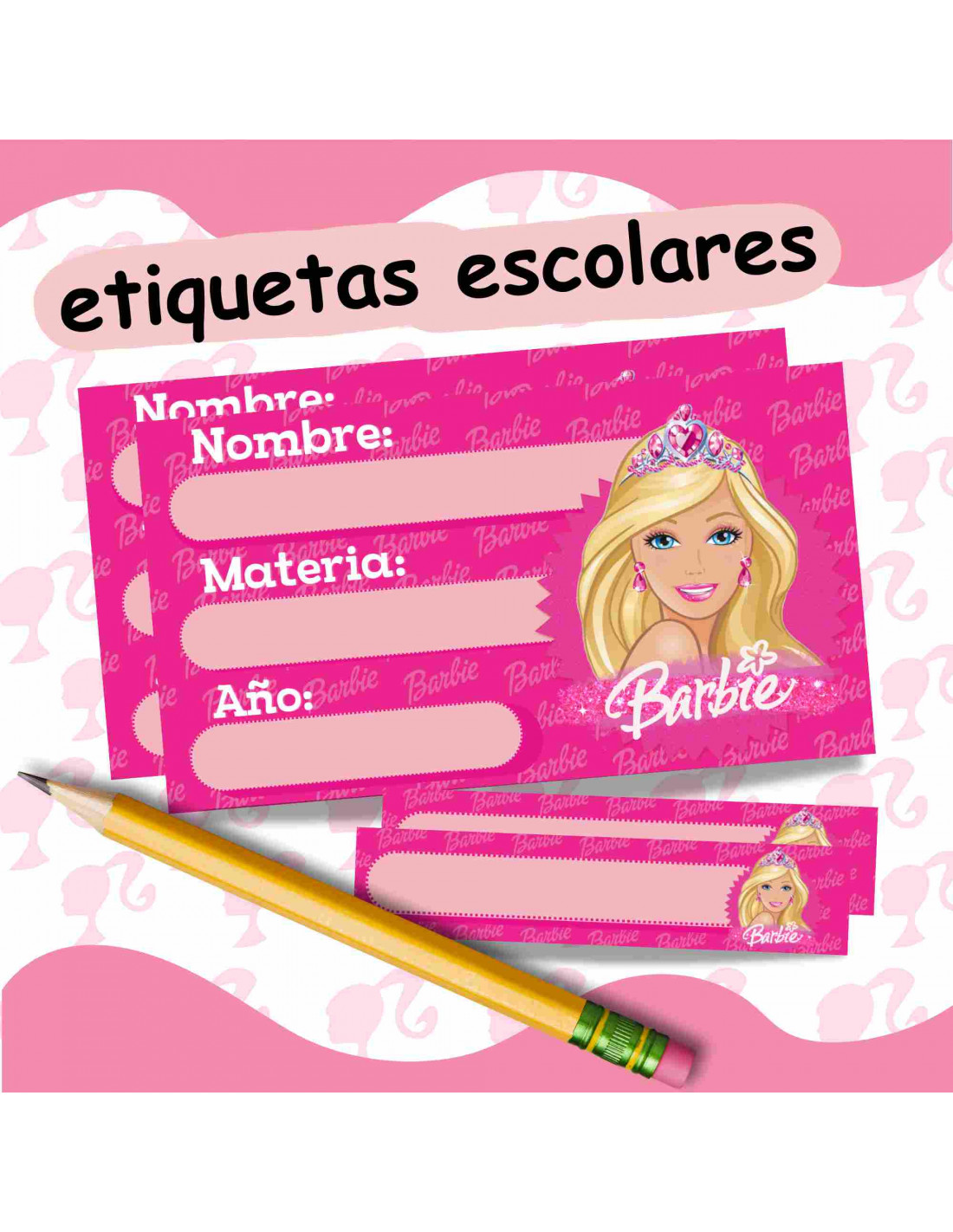 Etiquetas escolares Barbie