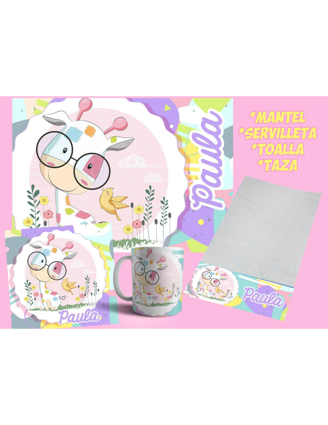 TODOS LOS DISEÑOS DISPONIBLES PARA QUE ARMES LOS SET MÁS LINDOS. INCLUYE EL MOLDE DEL MANTEL, TOALLA, SERVILLETA Y TAZA. ADEMAS INCLUYE FUENTE,FONDOS Y DIBUJOS DE ACUERDO A CADA PERSONAJE TAMBIÉN INCLUYE EL MOCKUP PARA QUE LO PROMOCIONES EN TU PAGINA.