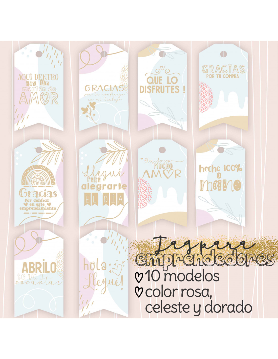 TAG EMPRENDEDORES - ROSA CELESTE Y DORADO