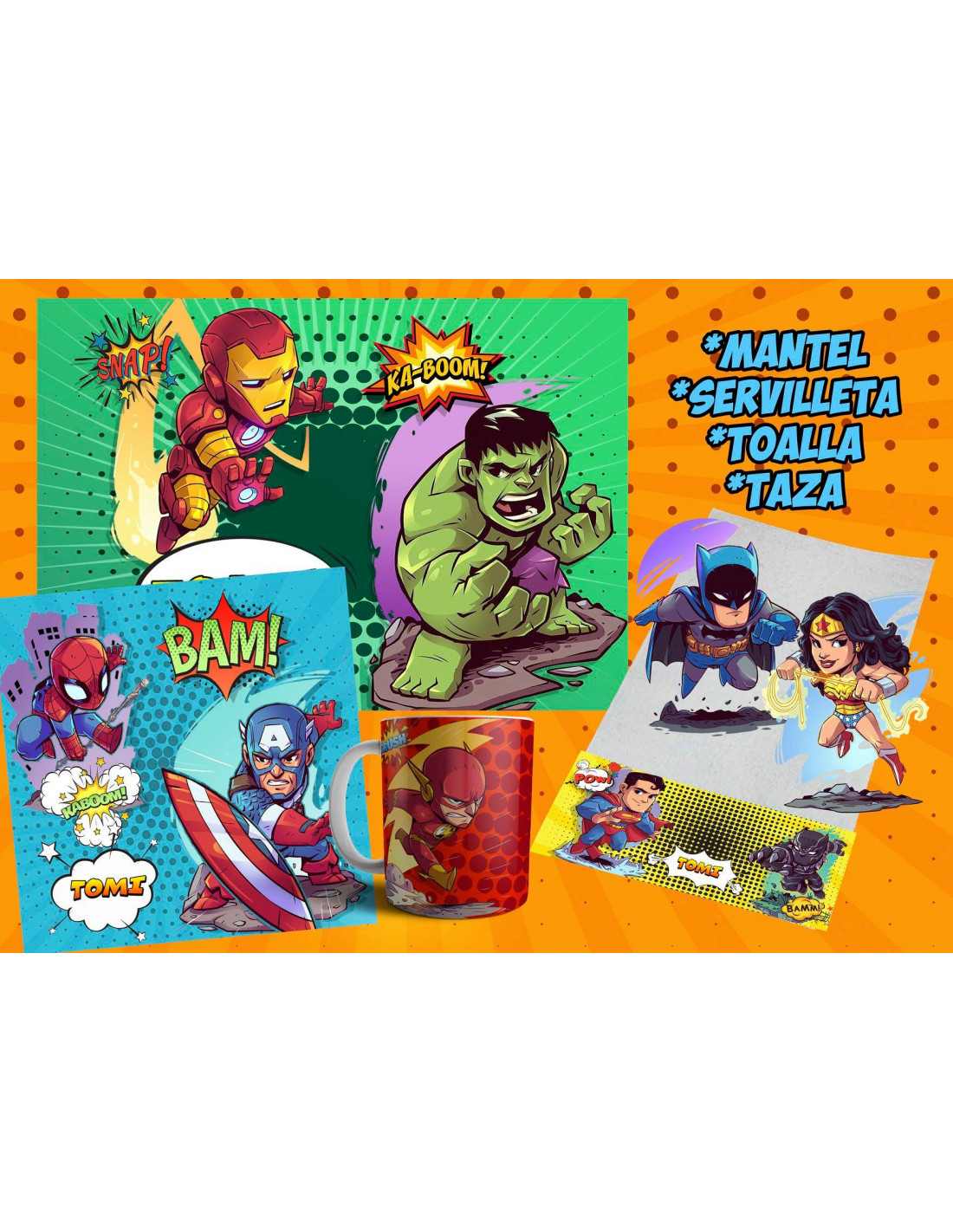 TODOS LOS DISEÑOS DISPONIBLES PARA QUE ARMES LOS SET MÁS LINDOS. INCLUYE EL MOLDE DEL MANTEL, TOALLA, SERVILLETA Y TAZA. ADEMAS INCLUYE FUENTE,FONDOS Y DIBUJOS DE ACUERDO A CADA PERSONAJE TAMBIÉN INCLUYE EL MOCKUP PARA QUE LO PROMOCIONES EN TU PAGINA.
