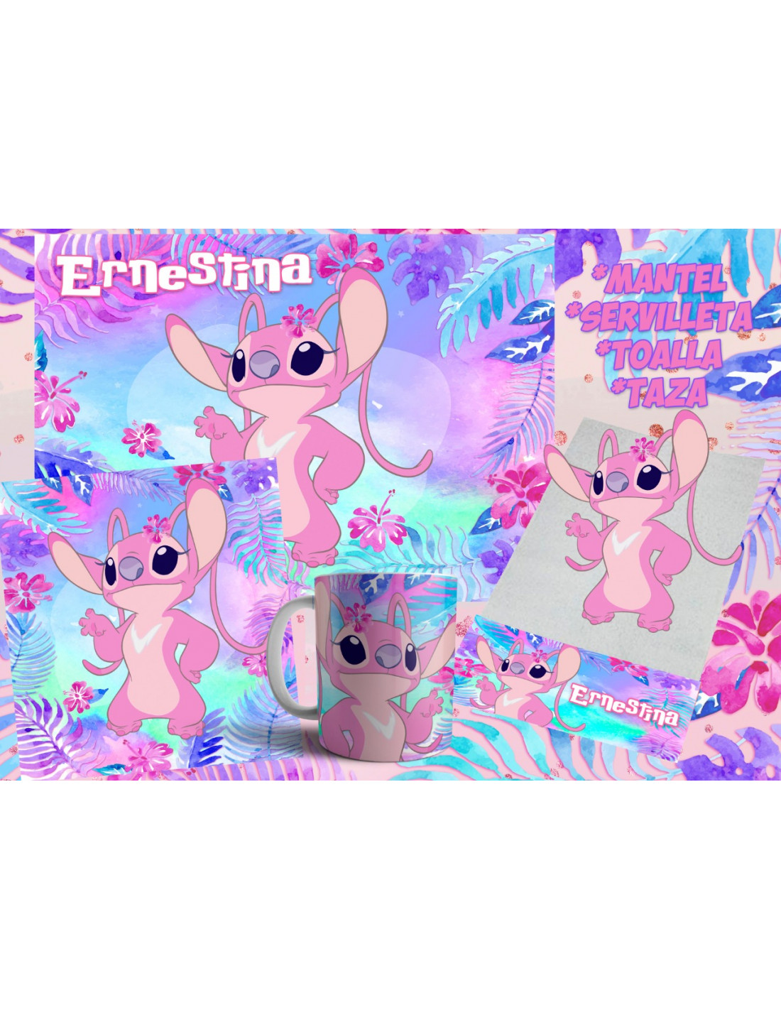 INCLUYE LA PLANTILLA PARA: *TAZA *INDIVIDUAL *TOALLA *SERVILLETA *CANTIMPLORA *TUPPER *MOCHILITA ADEMAS FONDO-DIBUJOS- LETRA PARA QUE LO ARMES EN LO QUE QUIERAS