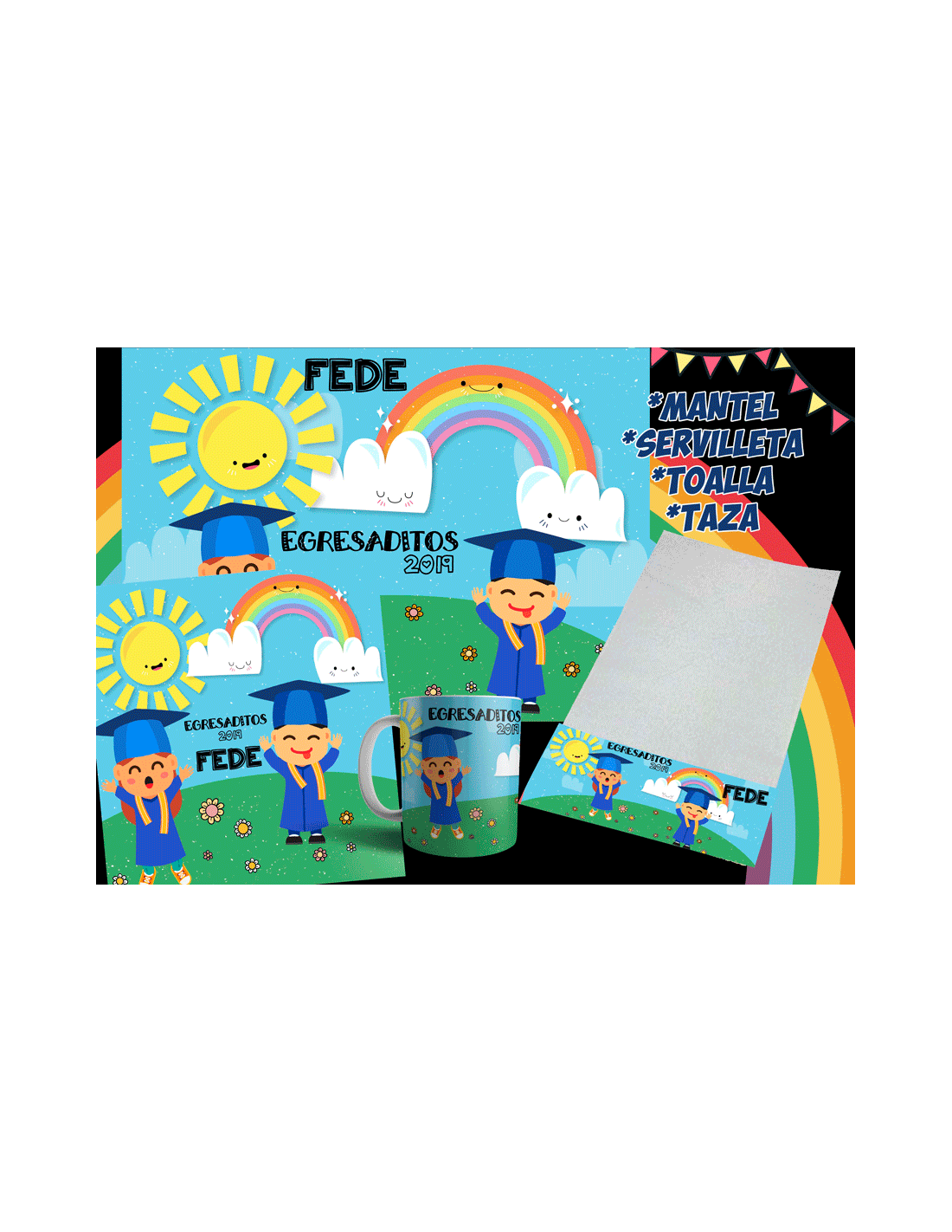 TODOS LOS DISEÑOS DISPONIBLES PARA QUE ARMES LOS SET MÁS LINDOS. INCLUYE EL MOLDE DEL MANTEL, TOALLA, SERVILLETA Y TAZA. ADEMAS INCLUYE FUENTE,FONDOS Y DIBUJOS DE ACUERDO A CADA PERSONAJE TAMBIÉN INCLUYE EL MOCKUP PARA QUE LO PROMOCIONES EN TU PAGINA.