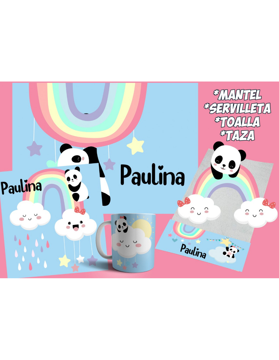INCLUYE LA PLANTILLA PARA: *TAZA *INDIVIDUAL *TOALLA *SERVILLETA *CANTIMPLORA *TUPPER *MOCHILITA*BARBIJO Y ADEMAS FONDO-DIBUJOS- LETRA PARA QUE LO ARMES EN LO QUE QUIERAS