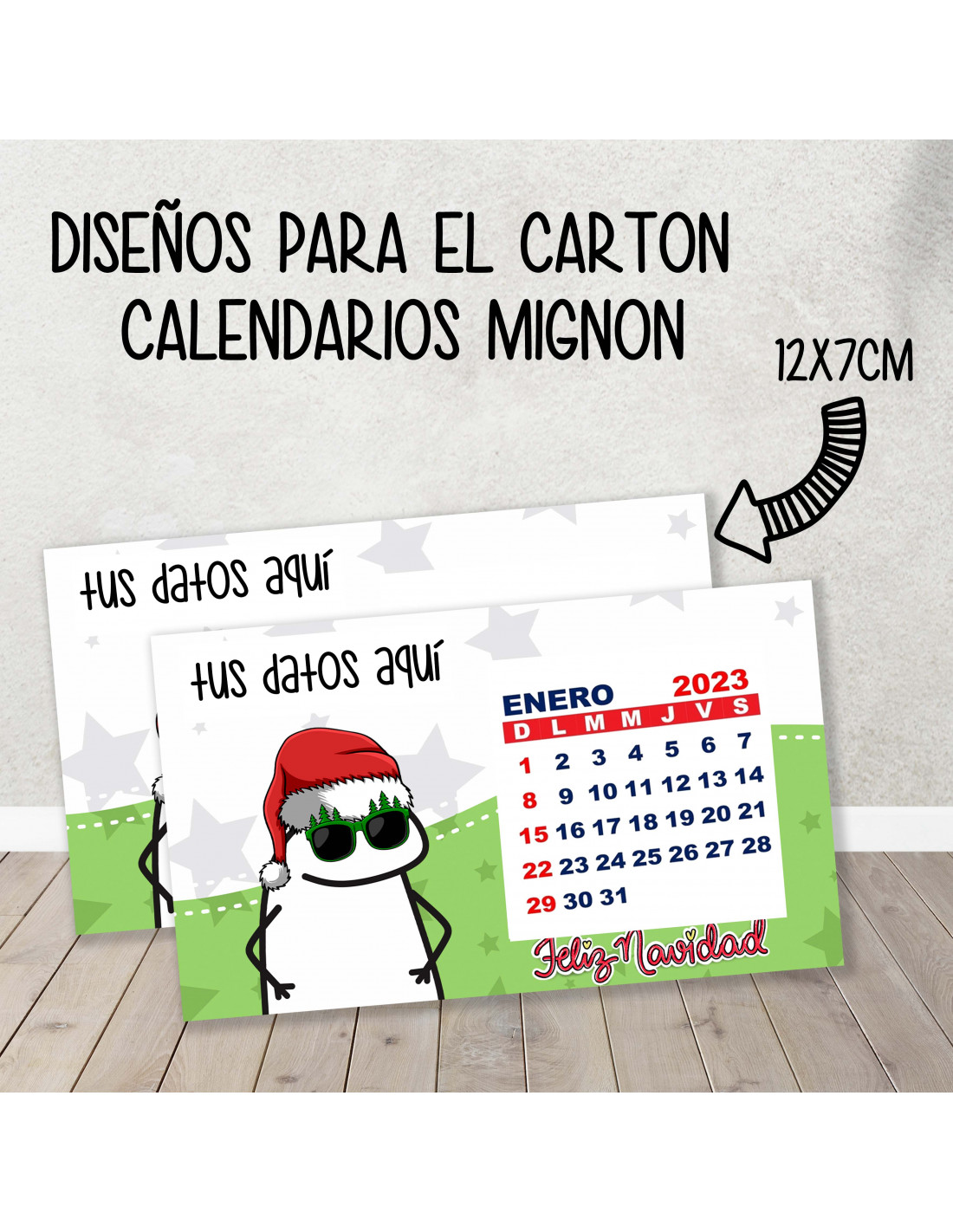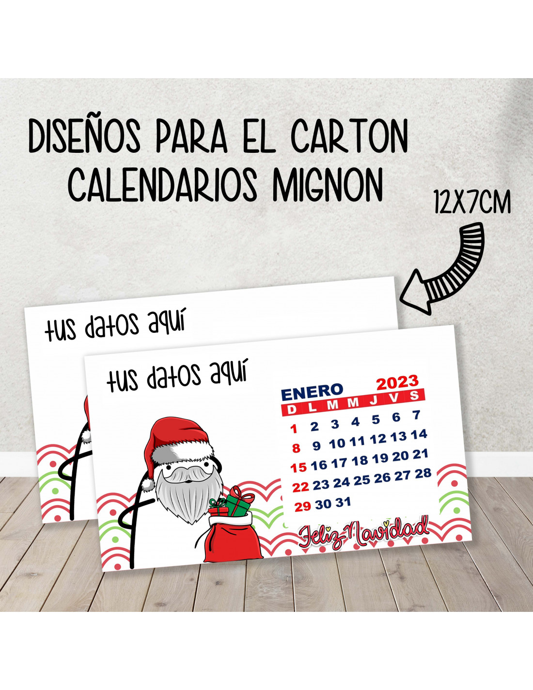 TAMAÑO 12X7CM VIENEN CON UN CUADRADO 5X5CM PARA ABROCHAR EL CALENDARIO